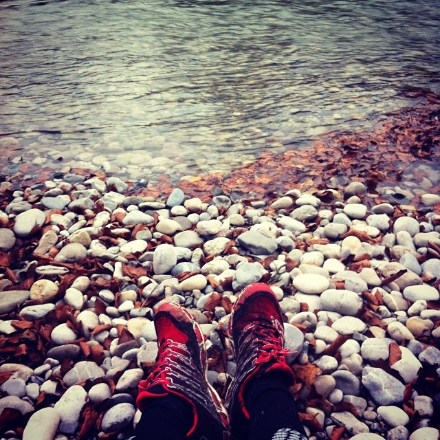Auf den fiesen Wurzeltrails hält er auch irre gut, bei matschigen Boden und Schlammpfützen rutscht man so gut wie nie aus – ausnehmen sind nasses Holz oder nasse Steine sowie moosig-nasse Holzoberflächen. Da sollte man etwas aufpassen und vielleicht nicht mit Schmackes auf einen nassen Stein an der Isar springen… Könnte noch nässer werden. (Hallo Isar, ich wollte dich schon länger aus der Nähe kennen lernen.) Ich hab sie sogar beim Bergsteigen dabei gehabt und muss sagen, dass sie auch auf den Bergstrecken einen super Halt aufweisen sowie Sicherheit. Beim Bergsteigen auf großen flachen Steinen sind sie eher rutschig, das liegt jedoch an der Trailsohle, die eher für Matsch&Co. gemacht ist.