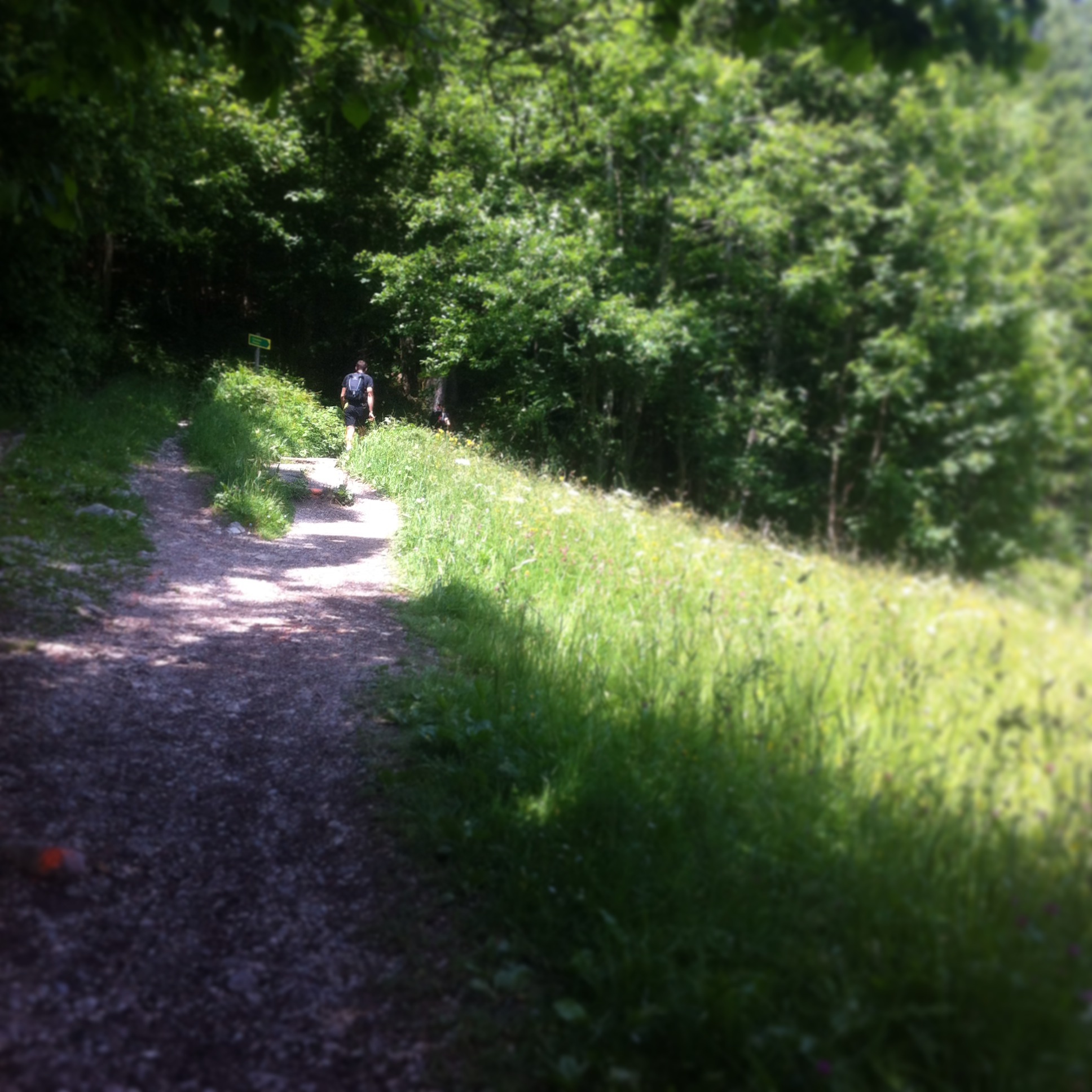 Jetzt Endspurt. Oder lieber nicht, es geht ja nur noch bergab. Da ich Downhills liebe, konnte ich recht gut laufen. Fehler war jedoch die Salomon Speedcross anzuziehen. Nun, Fehler… Sie waren für Geröll und Zehenschutz super, aber wie gewohnt wummerte ich ordentlich mit den Zehen an der Spitze rum und rieb mir Blasen auf. Ich sehnte mich etwas nach meinen Roclite 243 von Inov-8, der Bene hatte die an und für einen kurzen Moment überlegte ich mir ihn einzuholen und die Schuhe von den Füßen zu zerren. Das verwarf ich dann doch wieder und konzentrierte mich darauf, nicht auf die rutschenden und fallenden Amerikanerinnen vor mir zu treten. „Wow, srsly slow down!“ als die zweite stolperte, sich fing und nur auf dem Hintern landete. Wenigstens hörten sie auf in einer immensen Lautstärke über ihre Leistung zu sprechen. Ich mag die Stille ja lieber, den Wald, die Vögel.