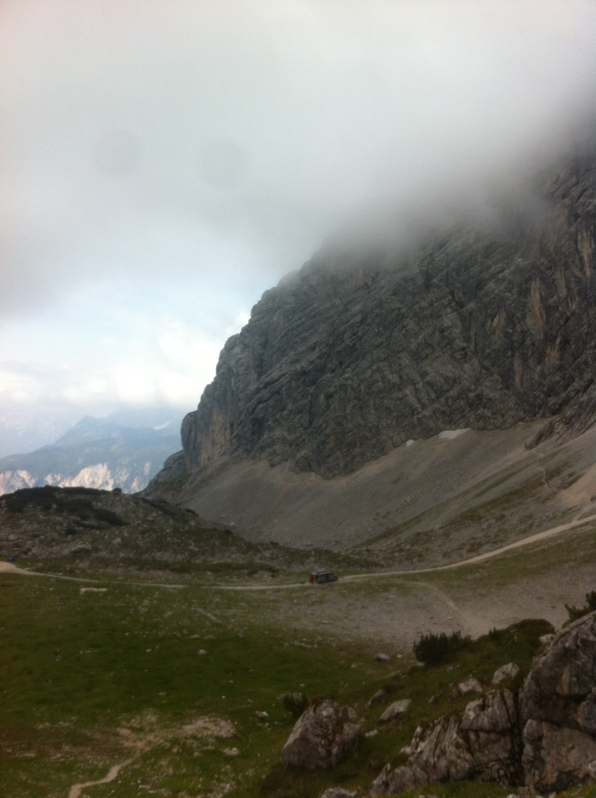 Wir sind in Grainau. Früh morgens, viel zu früh sind wir in München los gefahren. Während sich die goldene Sonne um 5.30 aus den verschlafenen Wolken schält und uns den Rücken in Richtung Berge wärmt, empfangen uns Wolken. Nebel. Dunstschleier. Die richtige Stimmung wenn zwei Läufer in Richtung Grainau unterwegs sind, um eben diese Berge zu erklimmen. Wir sind pünktlich und können zum Glück die Zugspitze nicht so ganz ausmachen, da besagter Nebel einen Gnadenschleier um diese Spitze gelegt hat. Dafür holen wir aber unkompliziert bei den netten Damen der Registration unsere Beutelchen, Startnummer und T-Shirts ab. Entgegen der Information, die ich hatte, bekam ich noch ein Ticket für den Transferbus. Wunderbar.