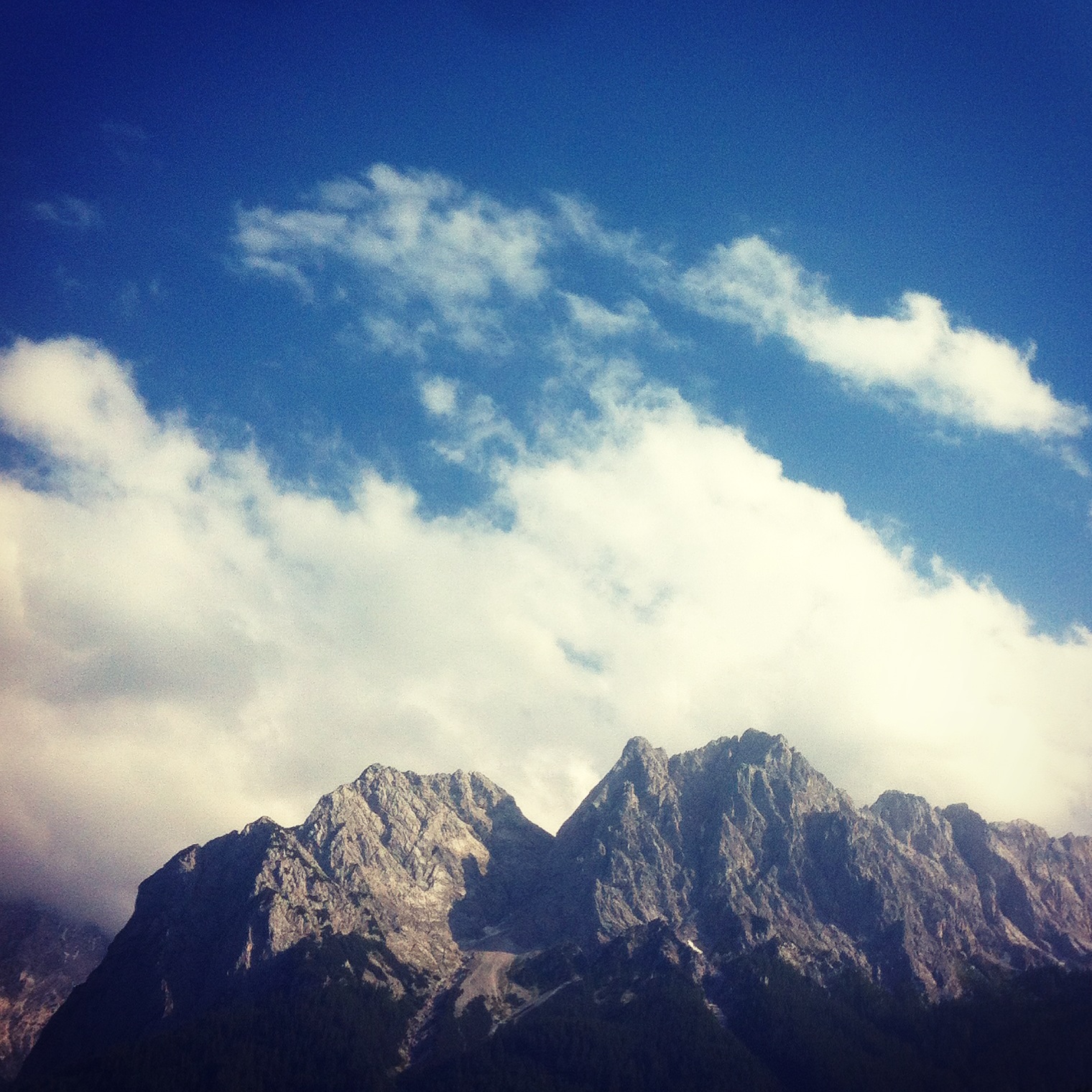 Zwei Personen sitzen vorfreudig aufgeregt mit allen anderen Läufern im Transferbus, der von Grainau nach Mittenwald geht. Eine von den 2 Personen davon ist wohl etwas nervöser als die andere, wiederum die andere ist etwas fitter. Während der Bus sich durch die grüne, morgendliche Landschaft schraubt, haftet sich der Blick auf das, was unseren heutigen Tag und den von ca. 2000 anderen dominieren wird: Die Zugspitze. Wir sind da, um genau diese zu erobern. Deswegen blicke ich ehrfurchtsvoll aus dem Busfenster und überleg zum sicherlich zwangisten Mal, ob ich das kann. Bene, mein Laufpartner heute und potentieller Goretex Transalpin Partner, grinst und versichert sich, dass er das auch wirklich kann, indem er das, was er bisher geleistet hat, durchgeht. Ich weiß, was ich geleistet habe und das ist wenig. Deswegen habe ich etwas Angst, aber dieser Berg wird heute von mir erobert und wenn es auf allen vieren sein muss. Grimmig und entschieden blicke ich aus dem Fenster.