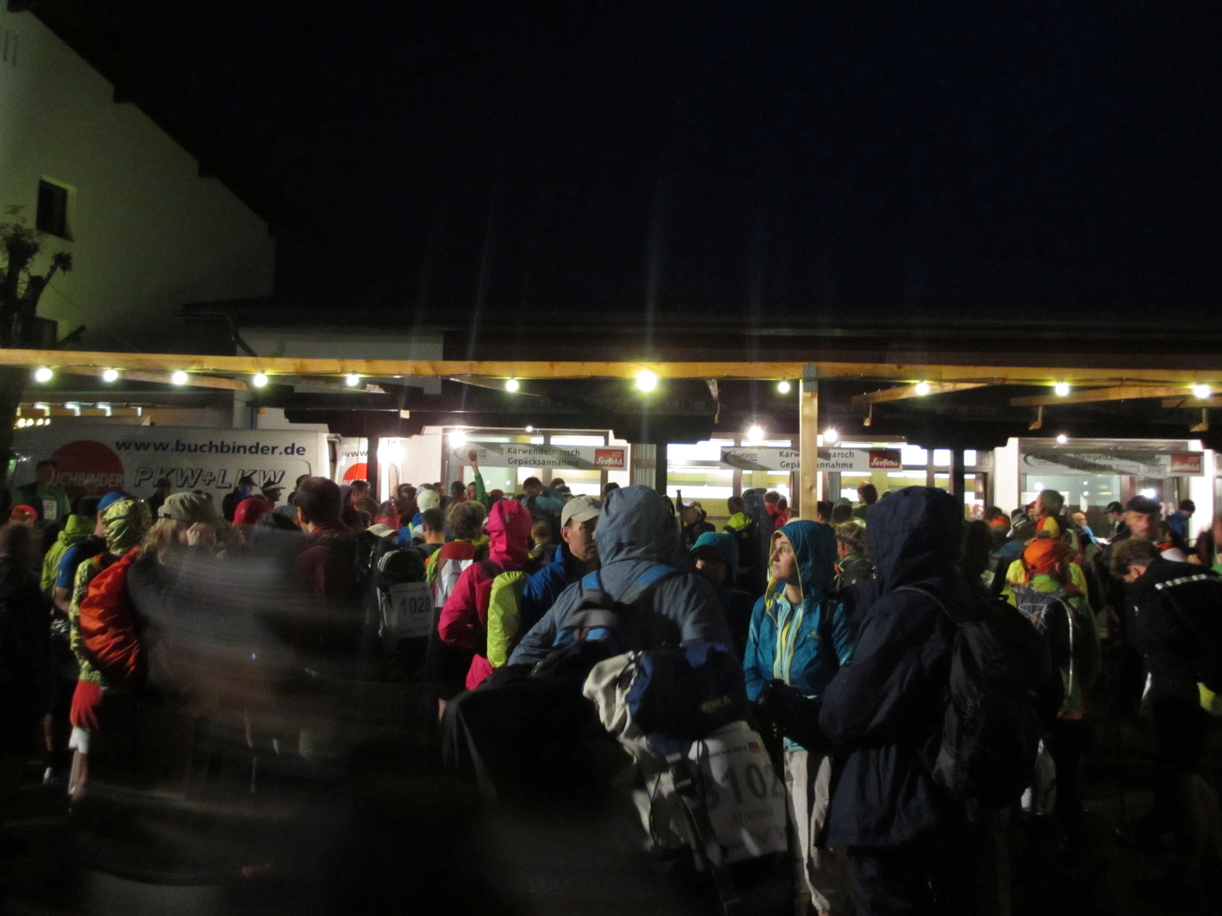 Mit einem Transferbus ging’s von Seefeld mit anderen verschlafenen Wanderern/Läufern nach Scharnitz. Dort erst einmal die Nummer abholen (wie, mich gibt es da nicht?! Hier ich hab ne Anmelde-Mail!) und das Gepäck abgeben, das ich dann in Pertisau wieder abholen durfte. Ging flott dafür, dass eine Menge Leute da waren. Über 2.000 Teilnehmer, wie ich im Nachhinein erfuhr. Und hier lässt sich gleich mal eine Sache festhalten: