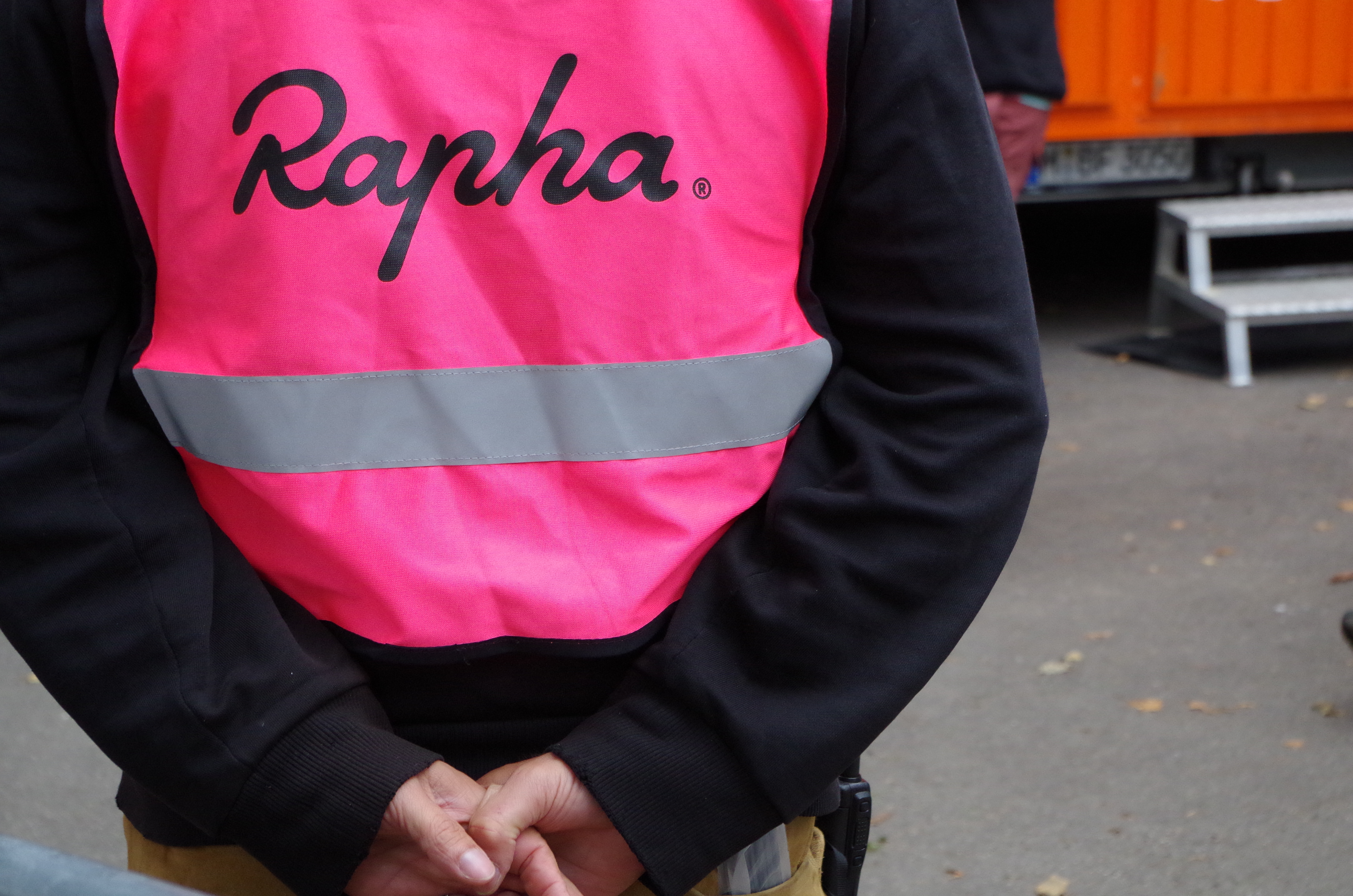 Zurück zum Olympiapark. Da gab’s eine kurze ca. 2,3km lange Strecke, die man sooft man konnte in einem gewissen Zeitfenster abfahren konnte. Also hieß das eines: Power richtig aufteilen und einfach bis zum Umkippen alles geben. Das haben auch einige gemacht, was noch einmal mehr für die Irren spricht. Sehr sympathisch, das alles. Das Areal war übersichtlich, aber von Kaffee- bis hin zur Frittenbude waren auch Rapha (Veranstalter), Muc-Off, Bianchi und Focus mit kleinen Zelten vertreten. Die Testräder von Focus waren recht schnell weg, ich als kleine Minikirsche hab’s schon mal garnicht versucht. Alles in allem aber eine schöne Stimmung.