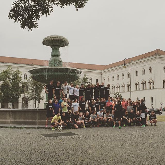 Das obligatorische Bild am Geschwister-Scholl-Platz während der kleine Hund der dabei war aus dem Brunnen soff und weiter ging’s. Die Kate und ich blieben zusammen, am Ende tapste Kate geduldig neben mir und ich hechelte, weil das Tempo etwas zu schnell für mich war. Irgendwann konnte ich mich auch ausziehen – fataler Fehler mit Shirt und Regenjacke und #boostmunich Shirt zu laufen – und wir liefen dann gemütlich weiter. Als wir dachten, wir wären das Schlusslicht, Birgit, Kate und ich, diskutierten wir über die Tatsache, dass jeder Lauf vorne und auch hinten einen Laufleiter braucht. Sonst bleiben die langsamen einfach hinten und irgendwann sind die weg, verschwunden oder auf der Straßenseite liegend – man weiß es nicht. Zu meiner freudigen Überraschung meinte Laufleiterin Ihlja dann, dass sie das Schlusslicht gewesen sei und es auch so geplant war die Gruppe am Ende abzuschließen. Top, finde ich sehr gut!