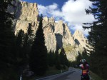 Der letzte lange Pass. Der Sella Pass. Wenig Steigung, dafür viele Serpentinen und recht lang. Je müder die Beine desto schwieriger ist es dann doch, ich arbeitete mich aber tapfer nach oben und schaffte es sogar am Anfang kaum Pausen einzulegen. Je höher wir kamen, desto schöner die Aussicht und desto müder die Beine. Die Sellagruppe stand über uns, majestätische Gesteinsberge und ich verstand, warum Pässe so toll waren. Ganz oben angekommen konnte ich dann nicht verstehen, wieso man sowas nicht mit dem Rad erkämpfen wollen würde. Diese Aussicht, diese Befriedung und Stolz hier oben angekommen zu sein mit diesem Blick – das alles habe ich mir erarbeitet.