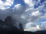 Der Fedaia Stausee war atemberaubend. Die Wolken tanzten auf den Bergen, die Luft war frisch aber so klar, wie sie nur Bergluft sein kann. Während wir dann zum Start des Sella Pass fuhren, wuchsen die Berge um uns rum. Links stand die Marmolada und ich hätte wohl ewig diese Schönheit anstarren können. Der höchste Berg der Dolomiten ist das Anstarren mit offenem Mund wert und alleine deswegen muss ich wiederkommen.