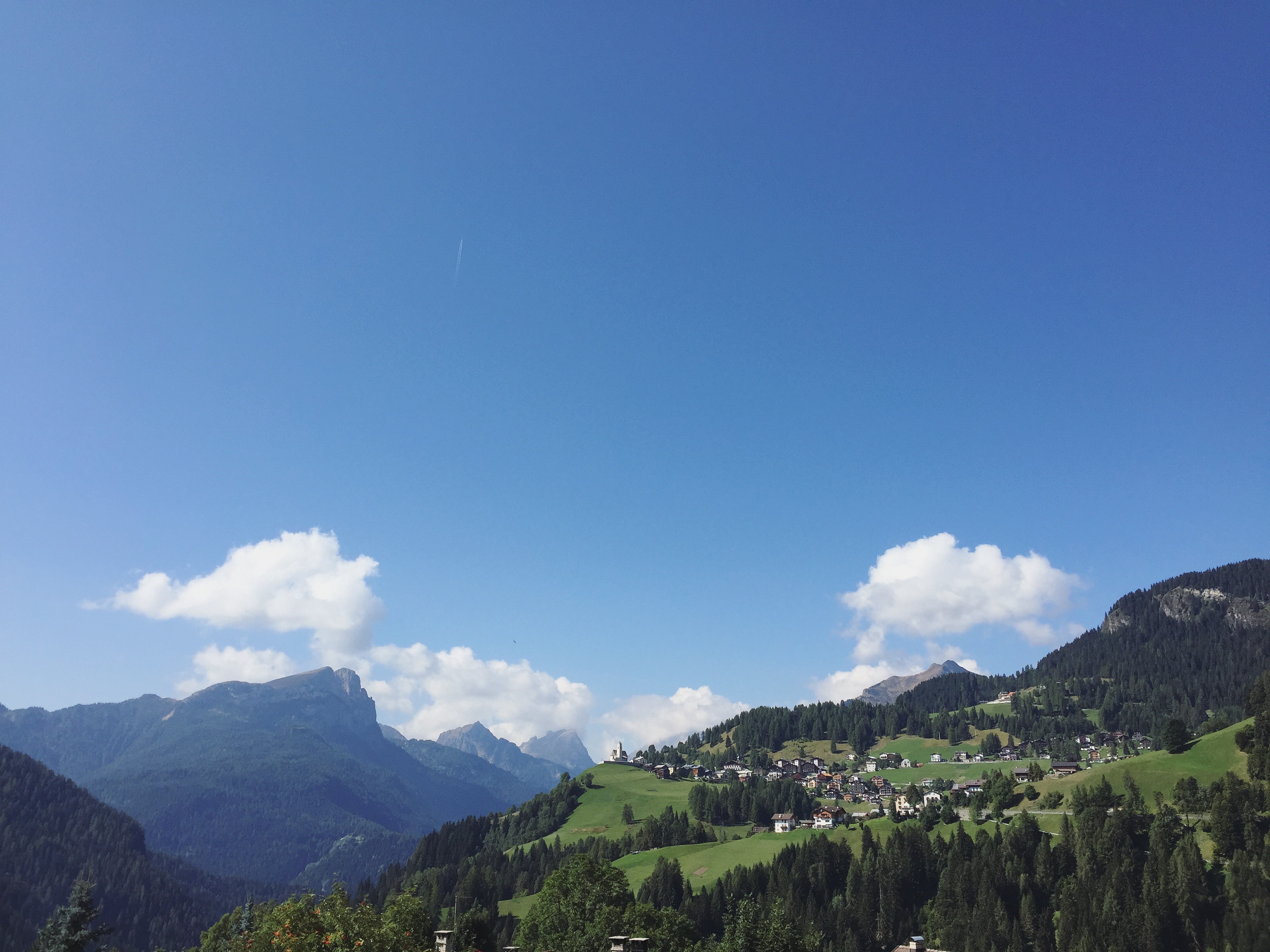 Während der Autofahrt nach Alta Badia, dort wo das Rapha Prestige Event stattfinden würde, überlegten wir und planten wir und teilten unsere Sorge. Vor allem weil Franzi, meine Fahrerin, eigentlich eine leichte Mandelentzüdung hatte und wohl nicht mitfahren würde. Das war blöd für sie und für mich, denn ich hatte Angst, dass mir die anderen zwei einfach davon fahren würden. In Alta Badia angekommen gafften wir erst einmal einfach nur die Berge an. Das grüne Drumherum, die pompösen Steinschönheiten, die da in den Himmel ragten. Ich war vom ersten Moment an verliebt.