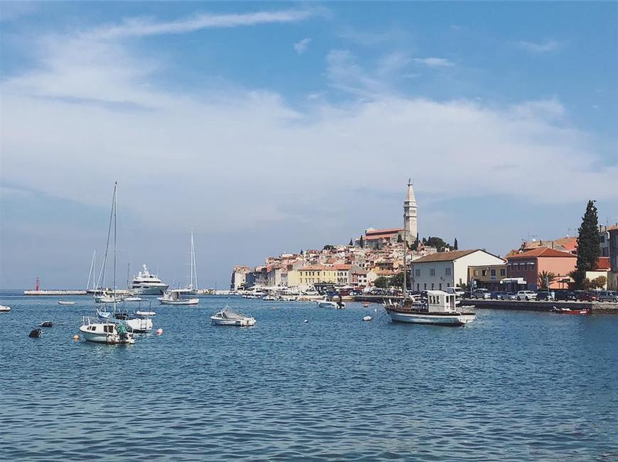 Die Schlafsäcke waren feucht, mir war kalt und die Sonne ging gerade auf. Was hilft? Genau: Einmal baden im Meer, das 10 Meter entfernt war, Instant-Kaffee und Restefrühstück. Die Schlafsäcke baumelten im Wind und in der Sonne und trockneten dann doch recht schnell. So konnten wir mit einem Besuch der Waschanlage im Campingplatz früh weiter ziehen, denn der Weg führte uns nach Rovinj – eine wunderschöne Stadt am Meer.